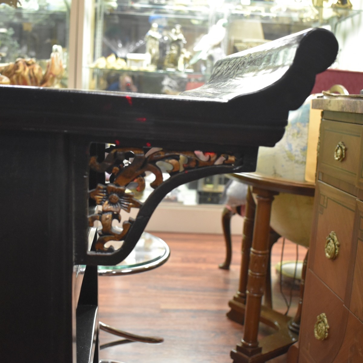 Chinese Black Lacquer and Parcel Gilt Altar Table. Measures: 38" H., 67" W., 18" D. Kodner Galleries offers phone and absentee bidding at a low, flat 21% buyerís premium without surcharge or hidden fees. For information, please contact the gallery at info@kodner.com or 954.925.2550 Condition: Paint loss, blistering, otherwise good condition. Estimate: $100.00 - $300.00 Domestic Shipping: Third party.