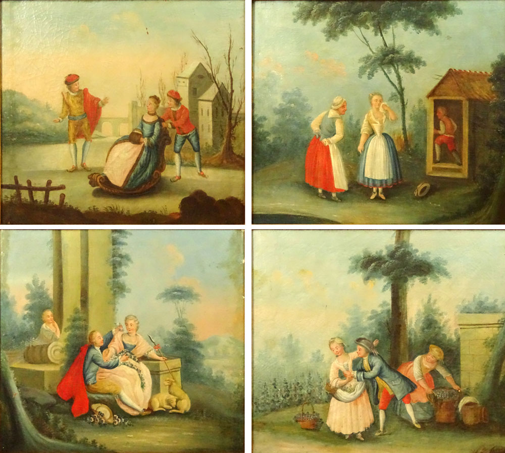 Lot of 4 Italian 19th Century oil on canvas paintings "Genre Scenes in the 18th Century style".