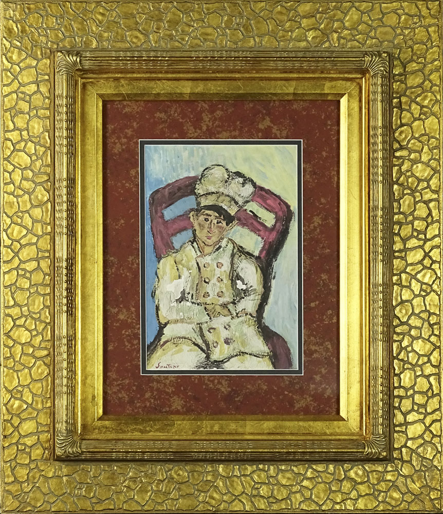 attributed to: Chaïm Soutine, Belarusian (1893-1943) Gouache on Board "Pastry Chef" Signed Lower Left Soutine. Measures 11 Inches by 7-1/2 Inches (sight) Frame Measures 25 Inches by 21-1/2 Inches.