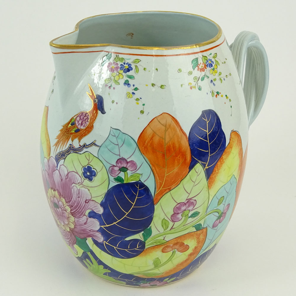 Lot of 2 Vintage Mottahedeh Porcelain Tobacco Leaf Items. Includes a Pitcher and a handled tray. Signed. Pitcher measures 8" H.