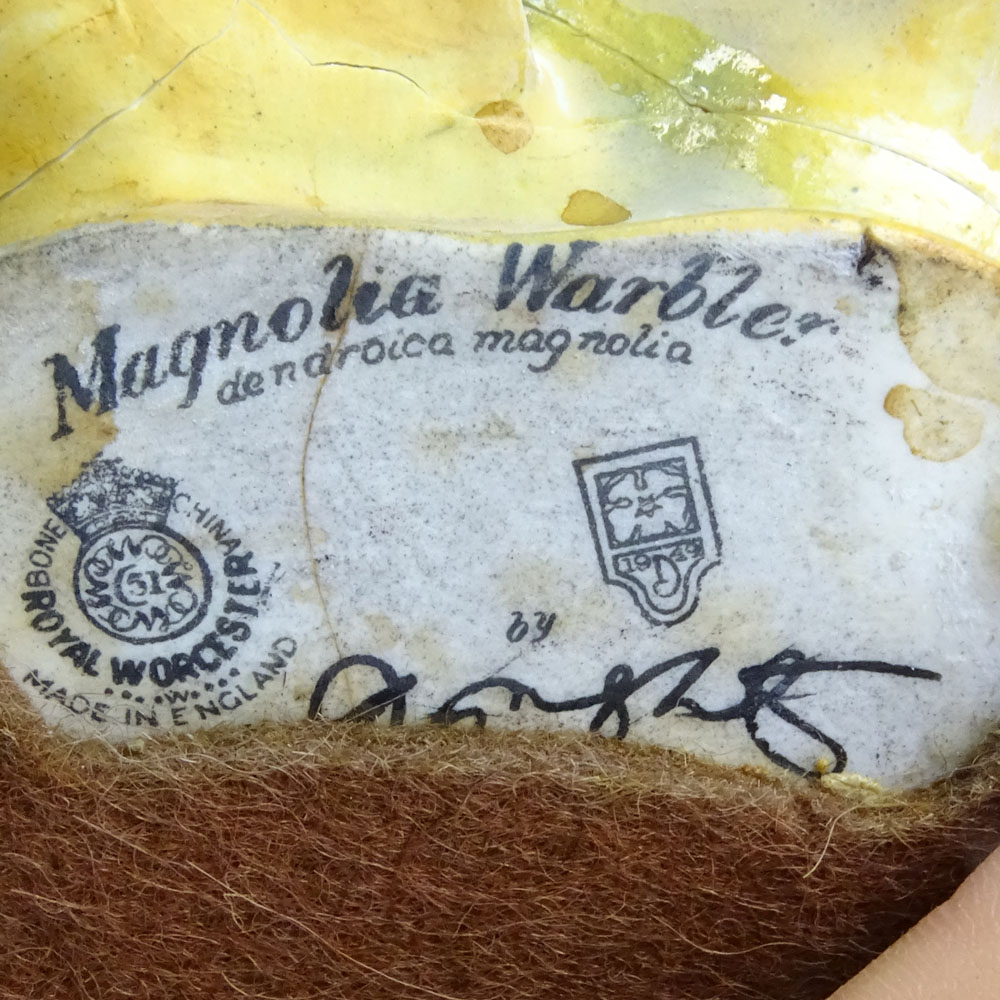 Dorothy Doughty Royal Doulton Porcelain Bird Group "Magnolia Warbler". On wood stand. Signed. Measures 13-1/2" H.