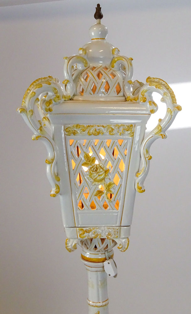 Vintage Italian Porcelain Capodimonte Style Reticulated Tall Floor Lamp Lantern.