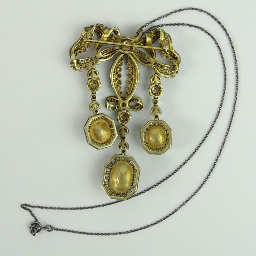 Vintage Victorian Design Opal, European Cut Diamond and Gold over Silver Pendant/Brooch. Unsigned. Pendant/Brooch measures 3" H, 1-3/4" W; chain measures 16" L. Approx. weight: 14.20 pennyweights.