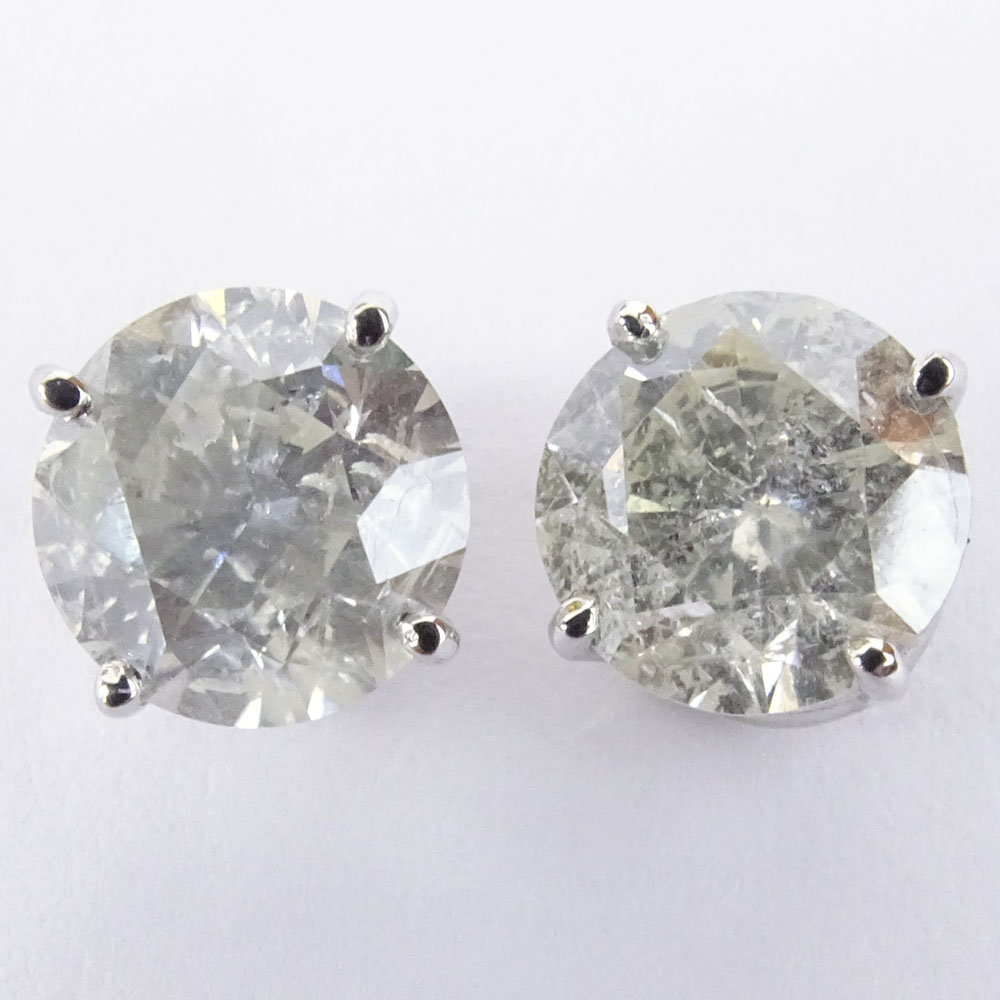 AIG Certified 2.77 Carat Total Weight Round Cut Diamond and 14 Karat White Gold Ear Studs. Diamonds J color, I1-I2 clarity. Approx. weight: 2.77 grams. AIG Appraisal No. 000715342084 to accompany this Lot.