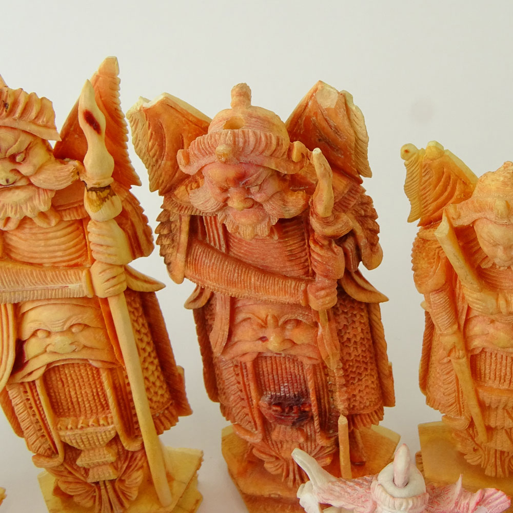 Lot of 32 Carved Ivory Chess Pieces (14 white, 18 colored). Unsigned. Tallest measures 5".