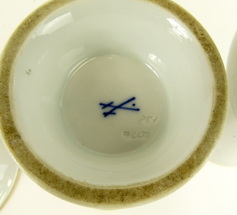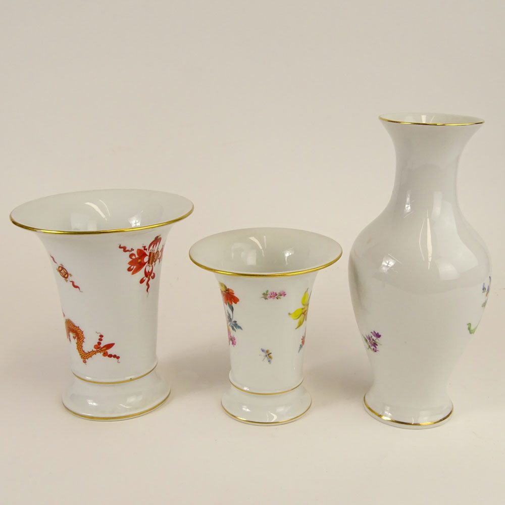 Collection of Three (3) Antique Meissen Hand Painted Porcelain Vases. Includes 9" baluster vase; 5-1/4" flare rim; 6-1/4" flare rim (4 slash marks) All signed with various date marks.