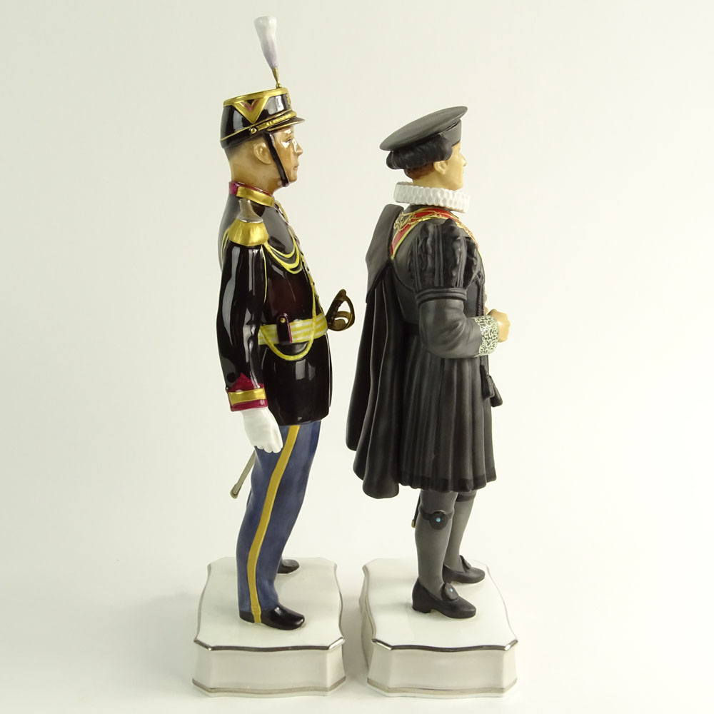 Collection of Two (2) Royal Worcester Porcelain Figurines. From The Papal Series "An Officer Of The Palatine Guard", "The Privy Chamberlain" (Imperfect). Signed.Tallest measures 12-1/2".