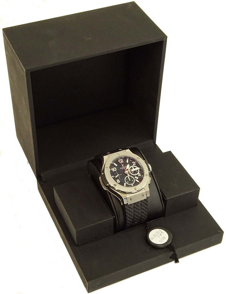 Men's Circa 2005 Hublot Stainless Steel Big Bang Chronograph with Rubber Strap and Deployment Buckle.