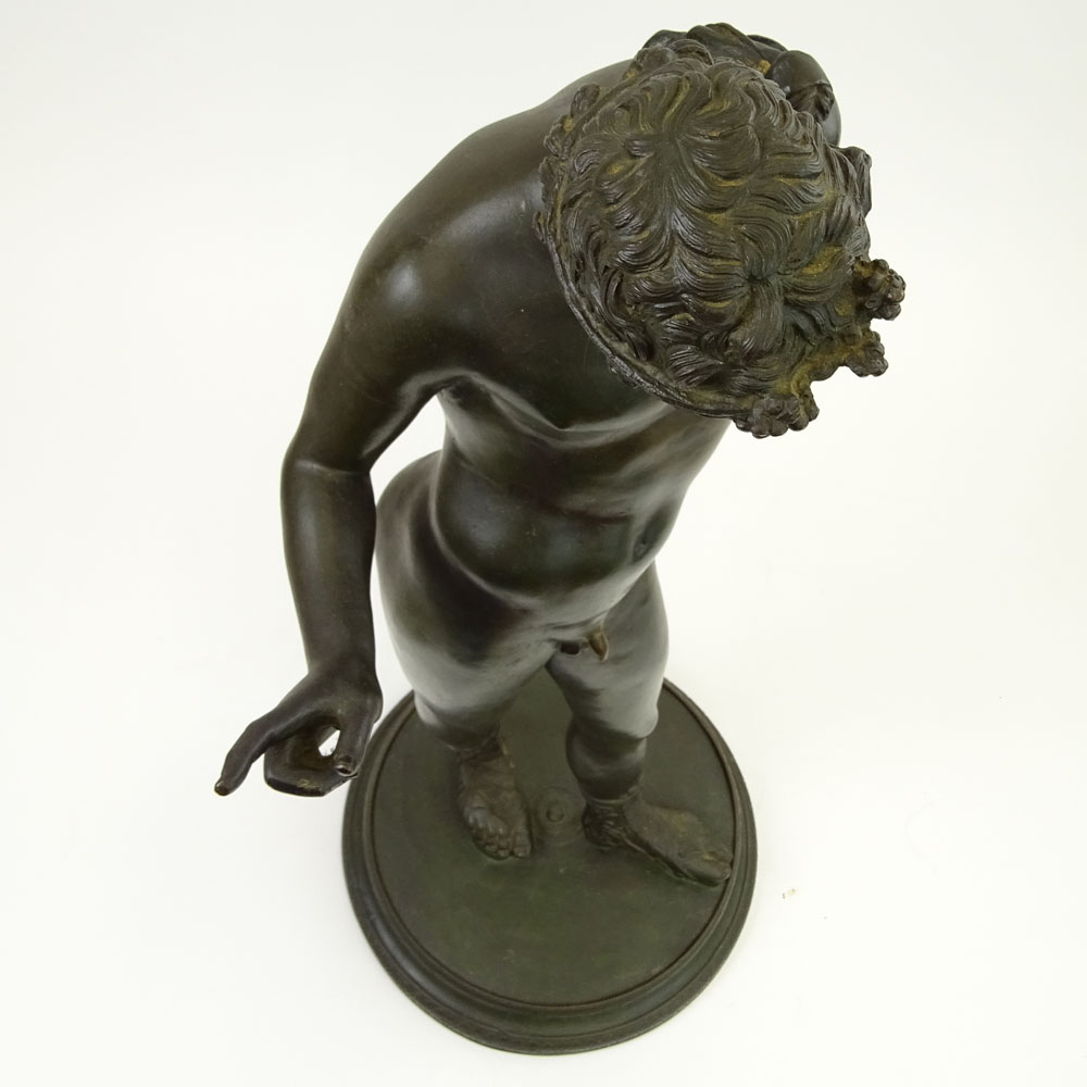 Vincenzo Gemito, Italian, (1852-1929) Bronze Sculpture, Standing Narcissus on stepped circular base. Unsigned. Good condition. Measures 25" H, 9-1/4" W at base.