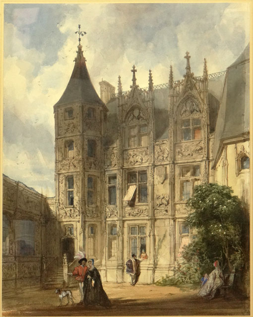 Joseph Nash British (1808-1878) Watercolor "Courtyard Scene" Circa 1835.