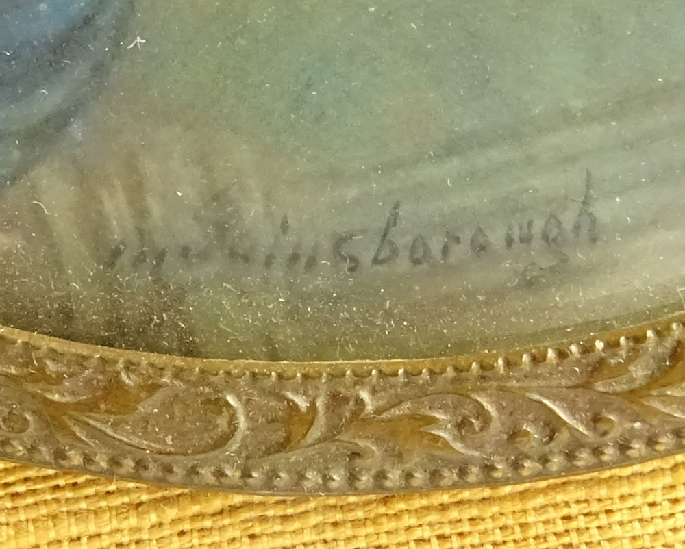 after: Thomas Gainsborough, British (1727-1788), Painted Portriat Miniature on Ivory. Bears signature. Good condition. Measures 2-1/2" H, 2" W. Frame measures 5" H, 4" W. This item will only be shipped domestically and was legally imported into the United States. Shipping to California, Connecticut, New Jersey or New York is Not Available.