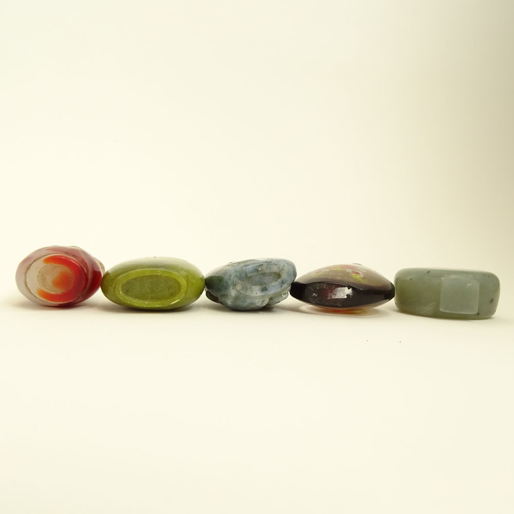 Collection of 5 Snuff Bottles Includes hardstone and reverse painting on glass.