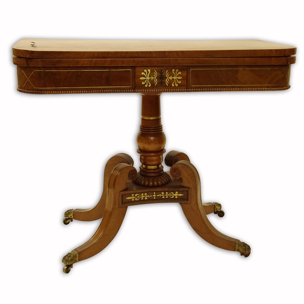 Vintage Regency Style Mahogany Game Table with Brass Inlay.