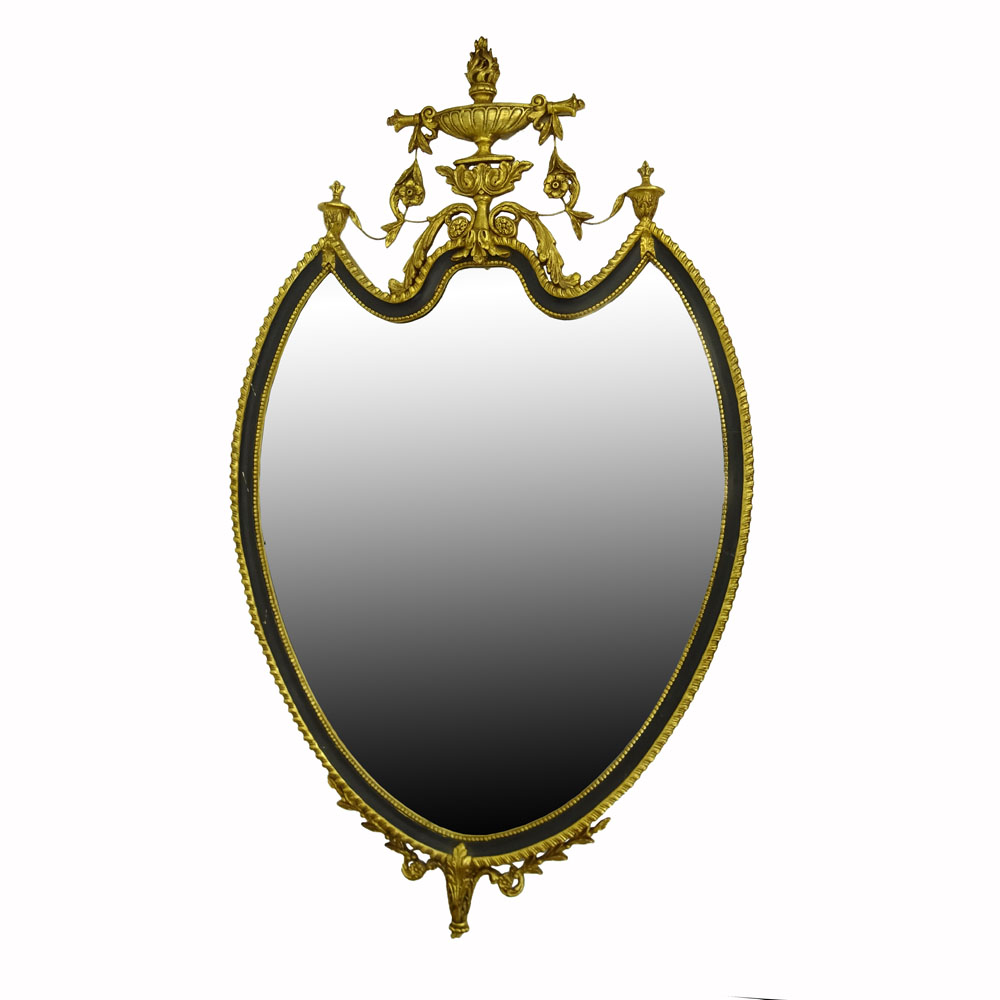 Mid Century Decorative Gilt Carved Sheild Shape Mirror.