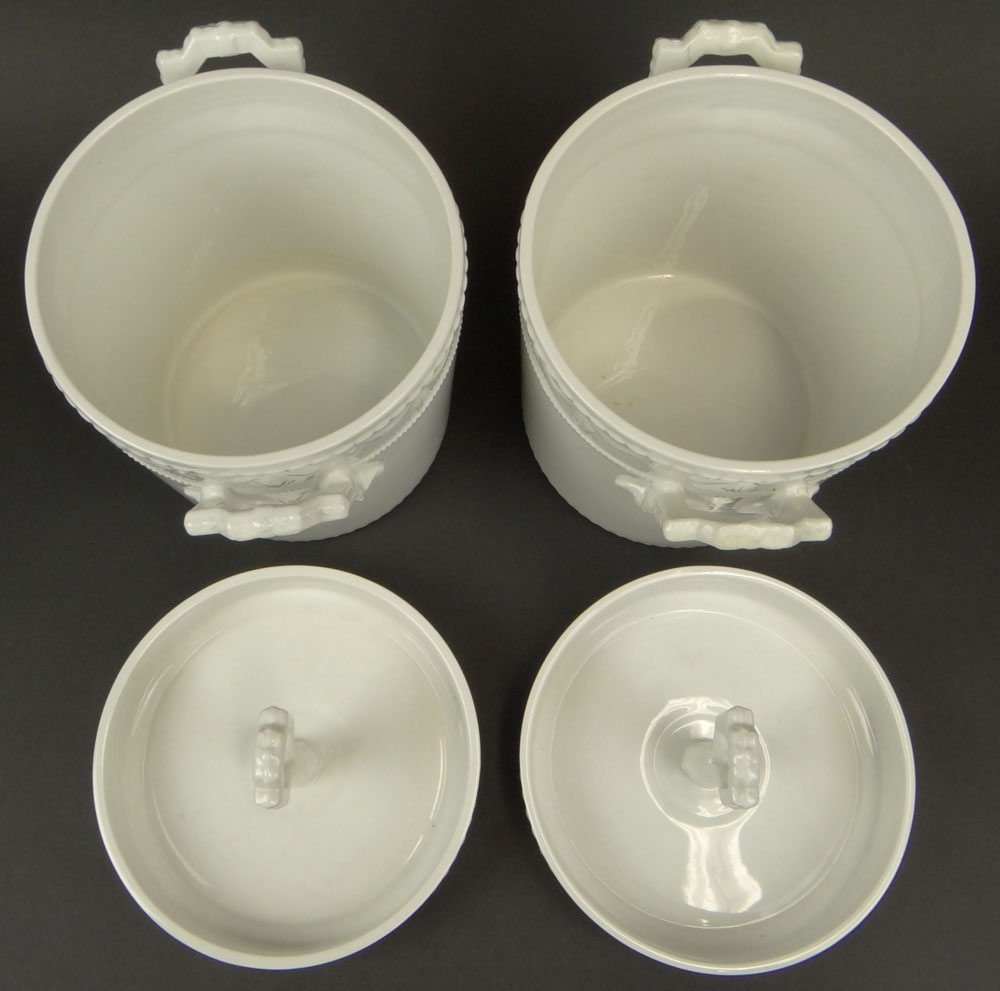 Pair 19/20th Century White Porcelain Fruit Coolers With Lids.