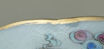 Item Condition: Spiderweb Hairline on Bottom, Flakes on Bottom Rim and Repair to Rim.