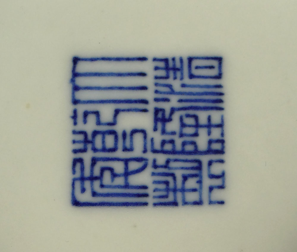 Chinese Blue and White Porcelain Vase with Dragon Chasing the Flaming Pearl Decoration. Qianlong (1736-1795) Reign Mark to Base. Very Good Condition. Measures 5-3/4 Inches Tall and 4 Inches Wide.