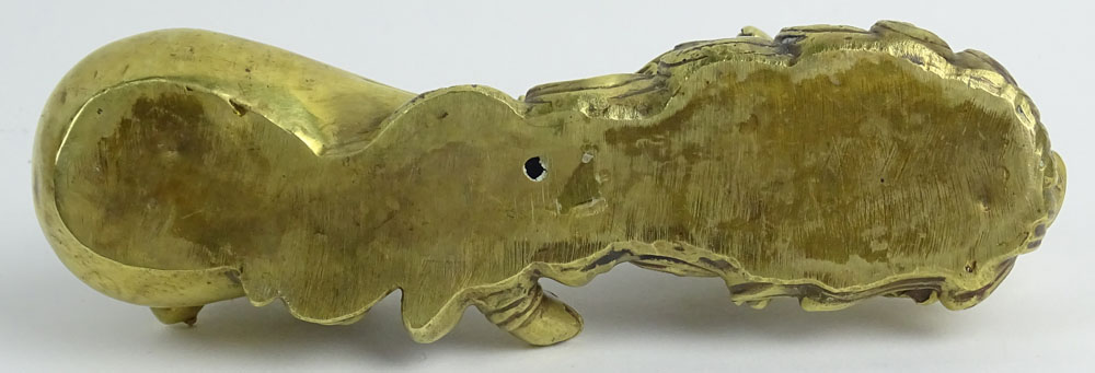 Modern Gilt Bronze Sculpture Two Buddha Riding a Fish. In custom Fitted Box. Unsigned. Good Condition. Measures 4-1/2 Inches Tall, 8-1/2 Inches Length.