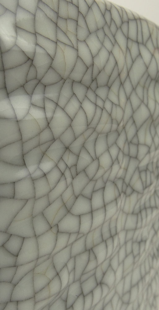 Chinese Celadon Crackle Glaze Cong Vase. Signed to Base. Good Condition or Better. Measures 11-1/4 Inches Tall and 5-1/2 Inches Wide.