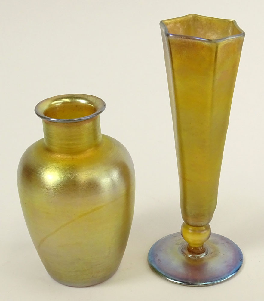 Lot of Two (2) Antique Tiffany Favrile Iridescent Glass Vases.