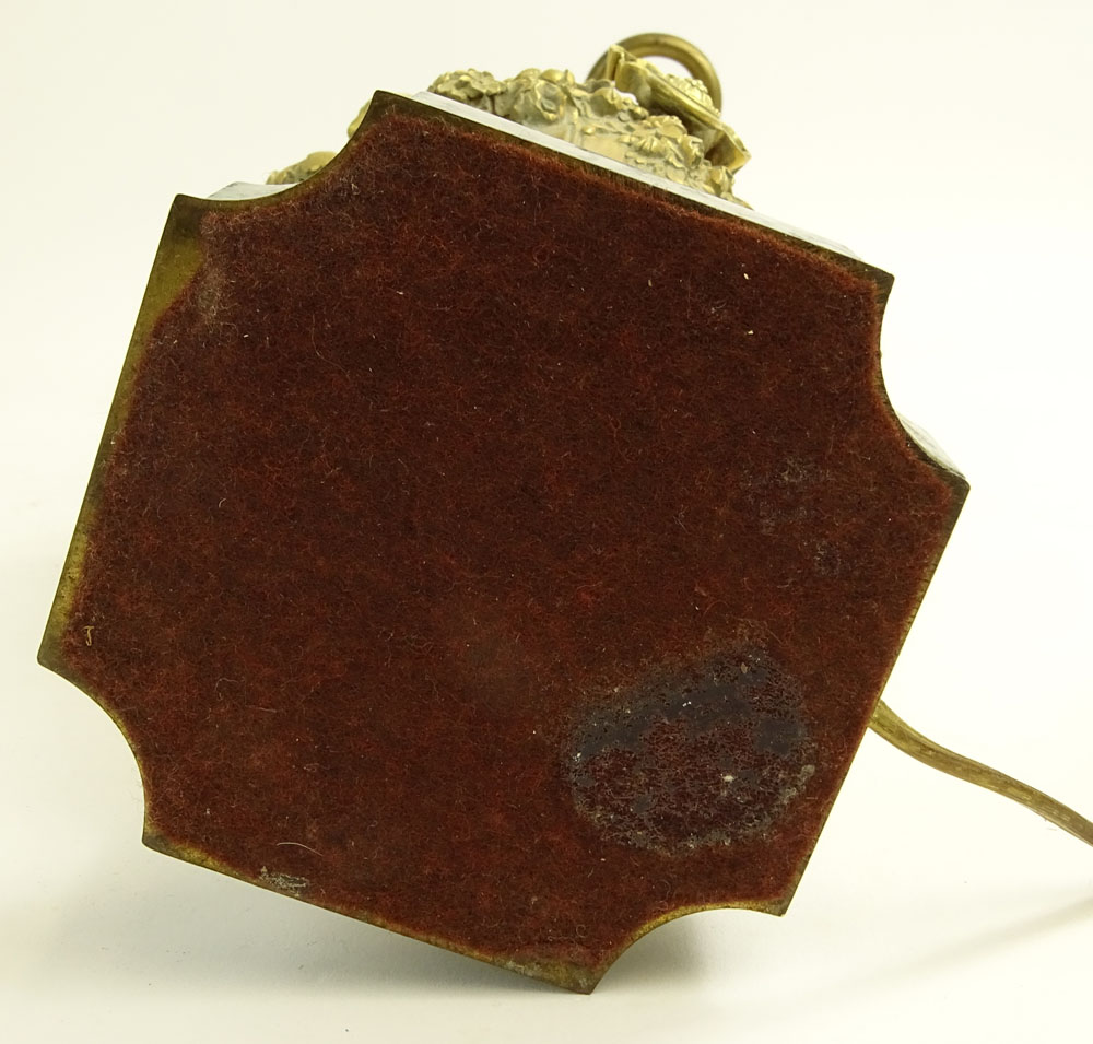 French Art Deco Gilt Bronze Lamp. Unsigned. Good condition. Measures (overall) 21-1/2" H, 5" W. Shipping $85.00