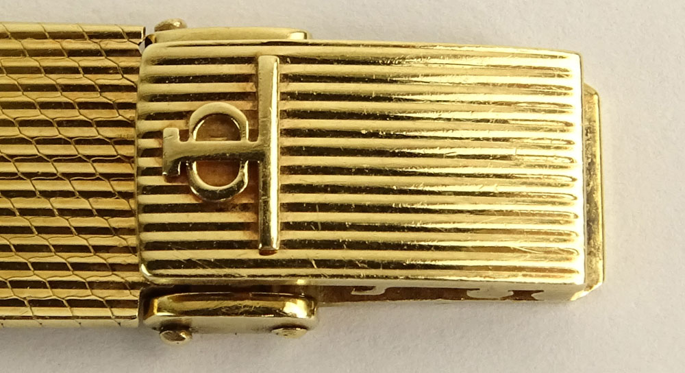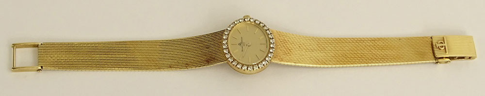 Lady's Vintage Baume & Mercier 14 Karat Yellow Gold Bracelet Watch with Diamond Bezel.