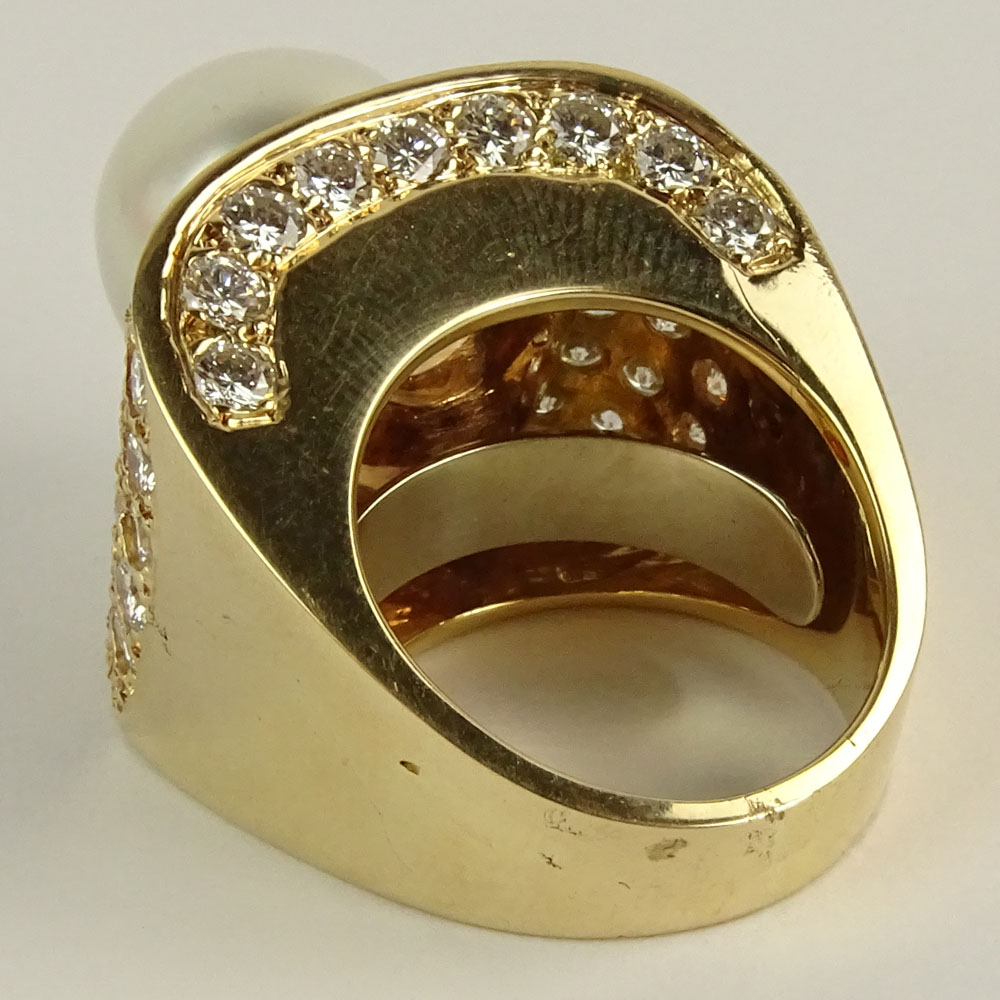 Lady's Approx. 6.75 carat Round Brilliant Cut Diamond, 13.5mm South Sea Pearl and 18 Karat Yellow Gold Ring.
