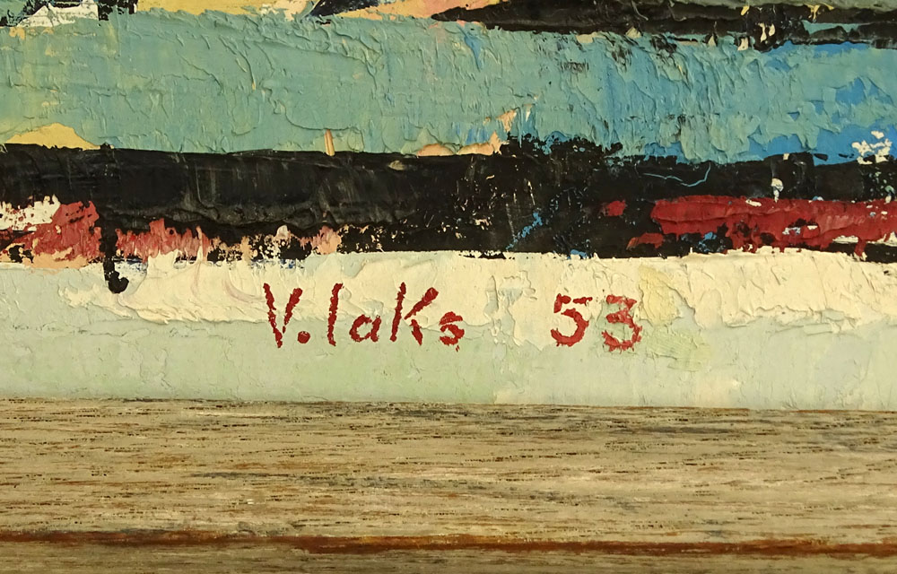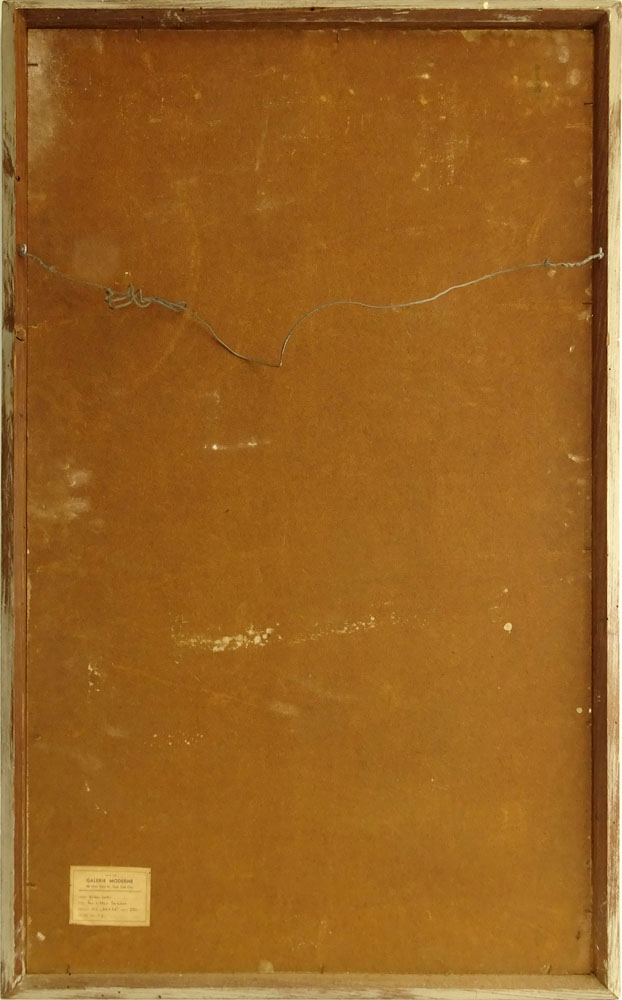 Victor Laks, French (1924) Oil on masonite "The Little Dancer" Signed V. Laks '53 Lower Left. Small possible exhibition label lower right (5), Gallery Label en verso: Galerie Moderne New York. Good condition. Measures 48" x 28", frame measures 50-1/2" x 30". Shipping: