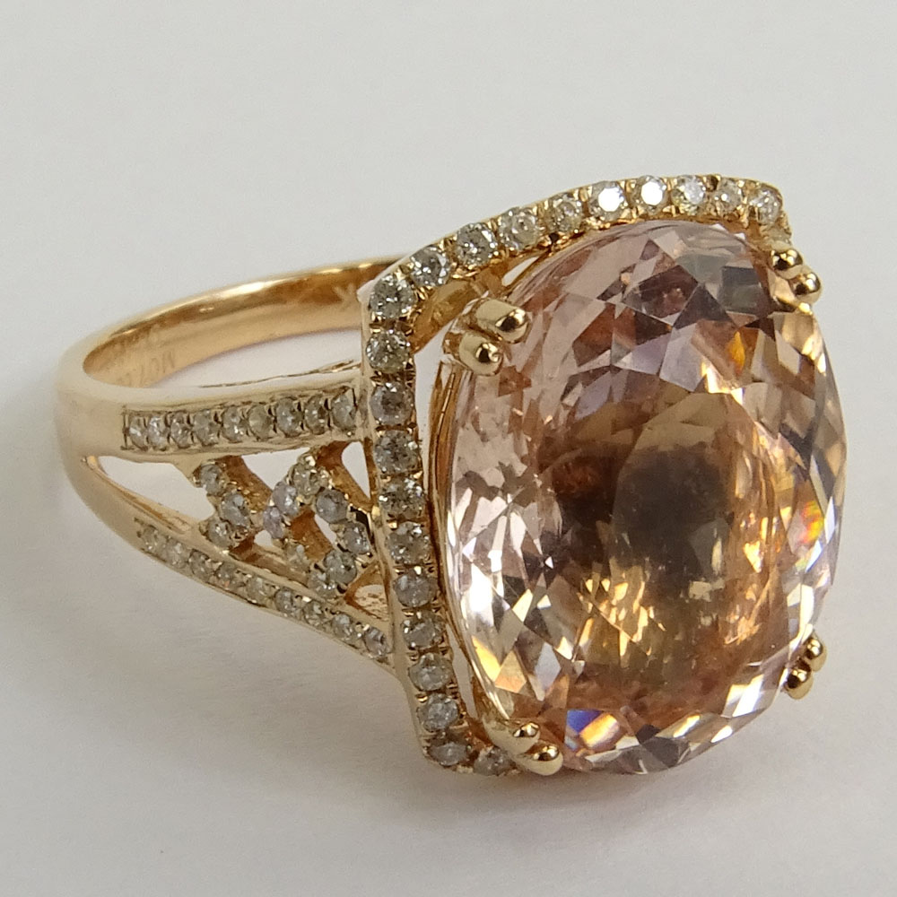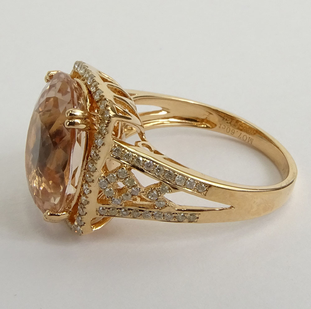 AIG Certified 7.60 Carat Oval Cut Morganite and 14 Karat Rose Gold Ring Accented with .42 Carat Round Brilliant Cut Diamonds.