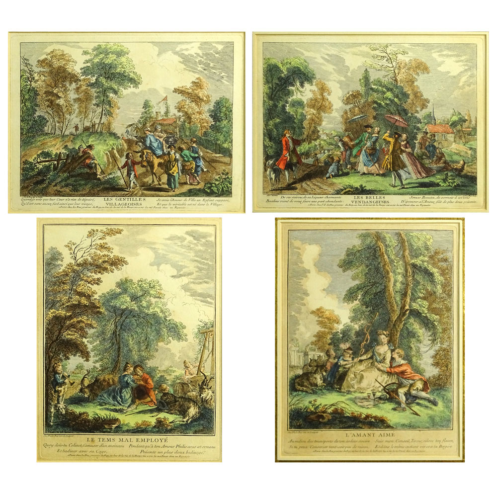 Jacques Philippe Le Bas, French (1707-1783) Four (4) Hand Colored Engravings.