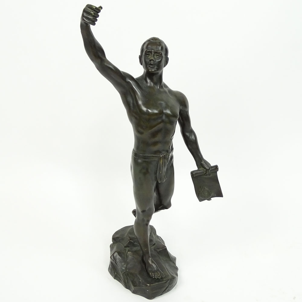 Otto Schmidt-Hofer, German (1873-1925) Bronze sculpture "Young athlete in victory pose" Signed, impressed mark. Missing laurel Branch in right hand. Measures 17" Tall. Shipping $85.00