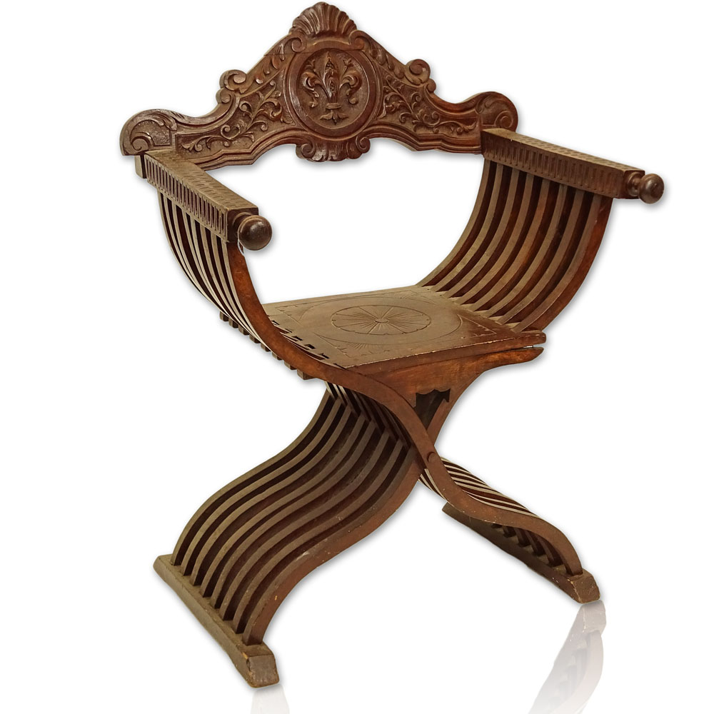 19/20th Century Carved Wood Savonarola Chair.19/20th Century Carved Wood Savonarola Chair.19/20th Century Carved Wood Savonarola Chair.