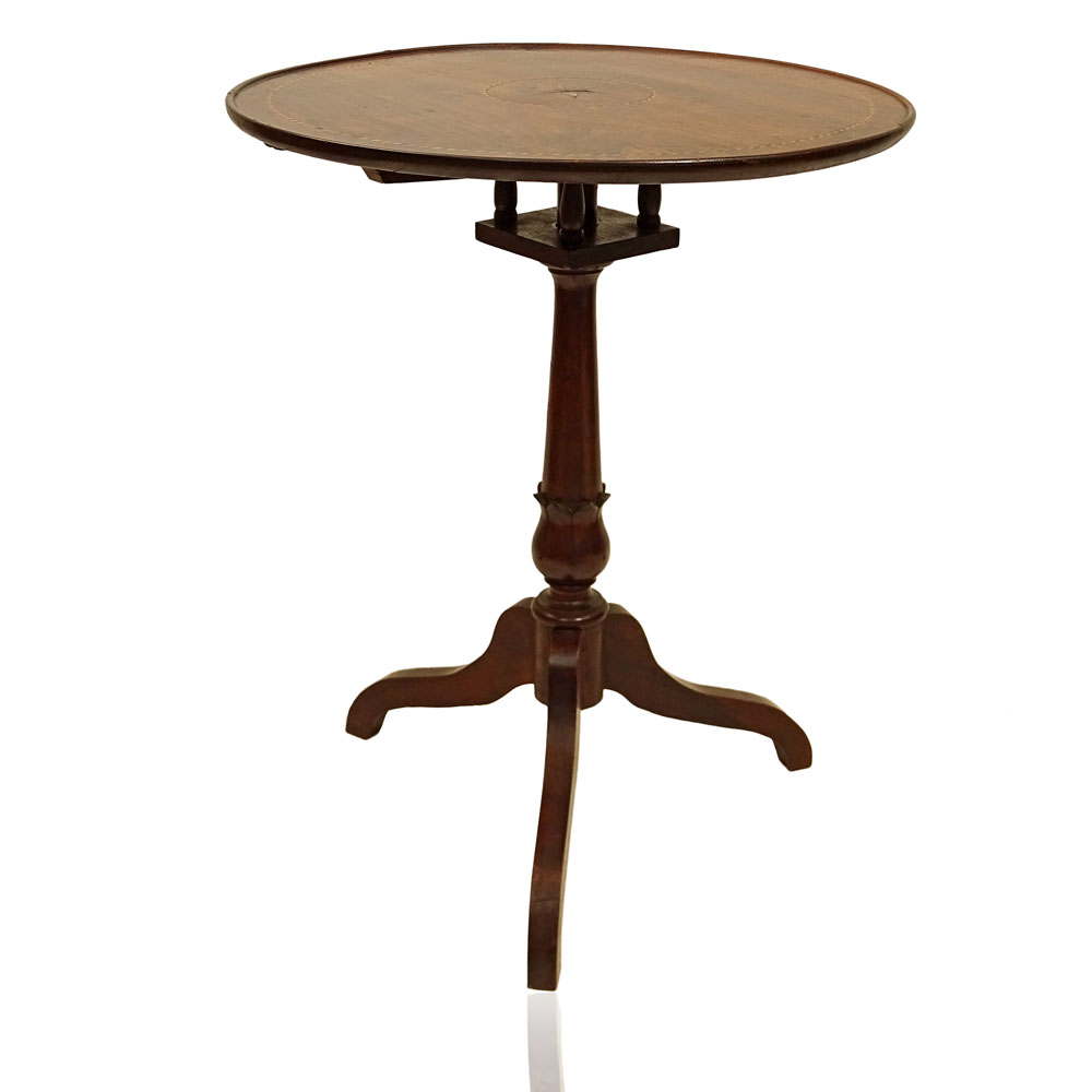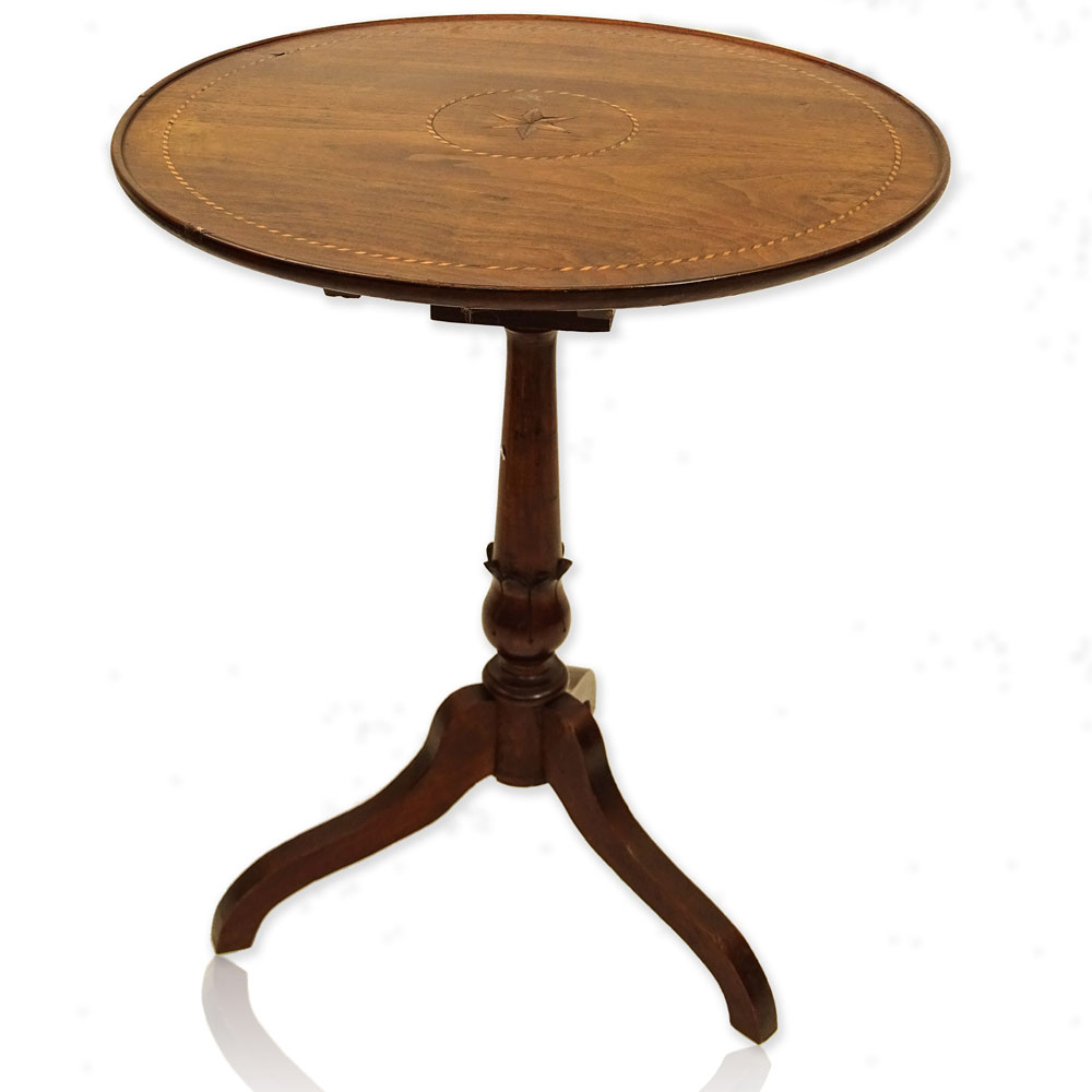 Late 19th Century Italian Sorrento Occasional Table. Marquetry top inlaid with walnut and various fruit woods, tripod leg base. Unsigned. Surface wear and rubbing, consistent with age. Measures 29-1/2" H x 23-1/2" Dia. Provenance: Collection of Robert Eigelberger, Casa Phippsberger, a prominent Palm Beach, Florida estate. Shipping: Third party. (estimate $300-$400)
