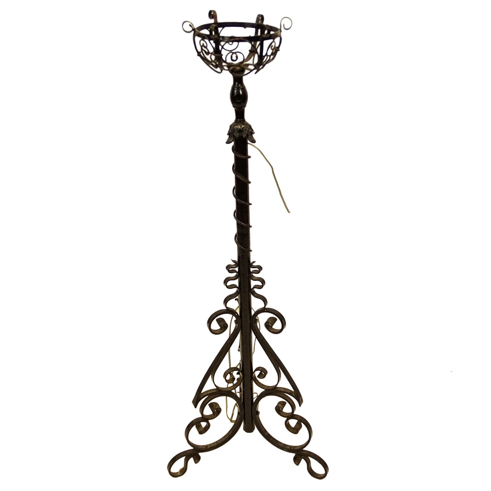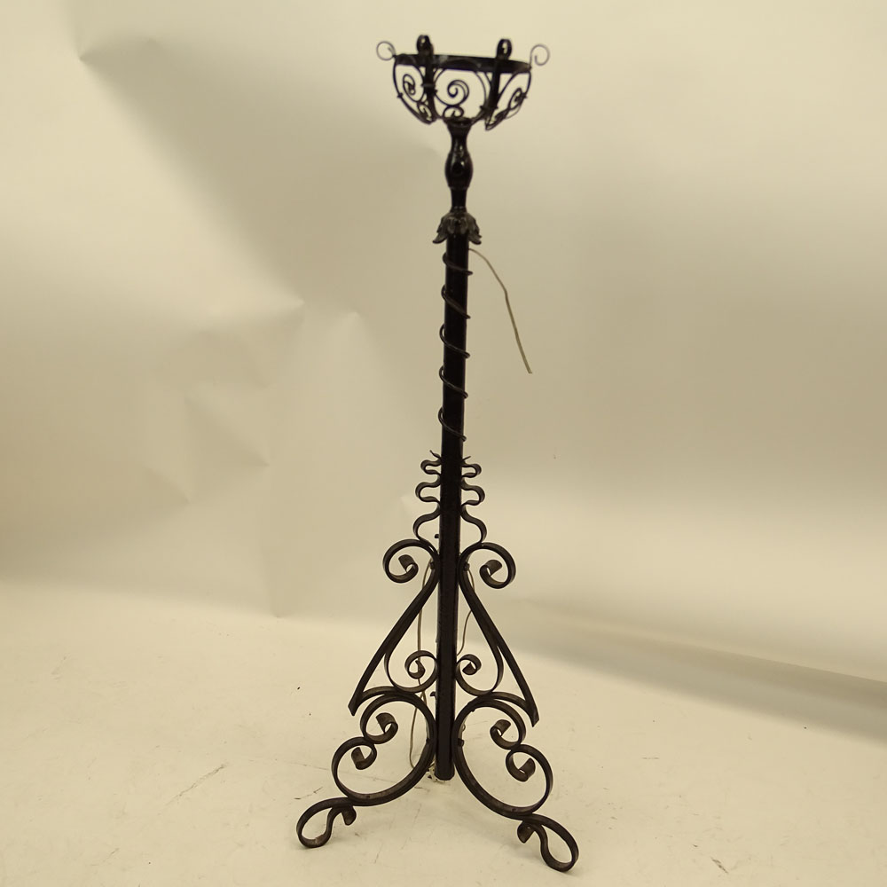 Antique Wrought Iron Torchiere, Now Wired. Unsigned. Good condition. Measures 49" H. Provenance: Collection of Robert Eigelberger, Casa Phippsberger, a prominent Palm Beach, Florida estate. Shipping: Third party (estimate $200-$300)
