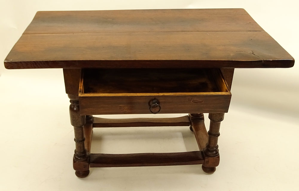 19th Century Italian Walnut Trestle Console Table With One Drawer. Unsigned. Typical wear and rubbing consistent with age, loose stretcher. Measures 29-1/2" H x 47" L x 28" D. Provenance: Collection of Robert Eigelberger, Casa Phippsberger, a prominent Palm Beach, Florida estate. Shipping: Third party. (estimate $400-$600)