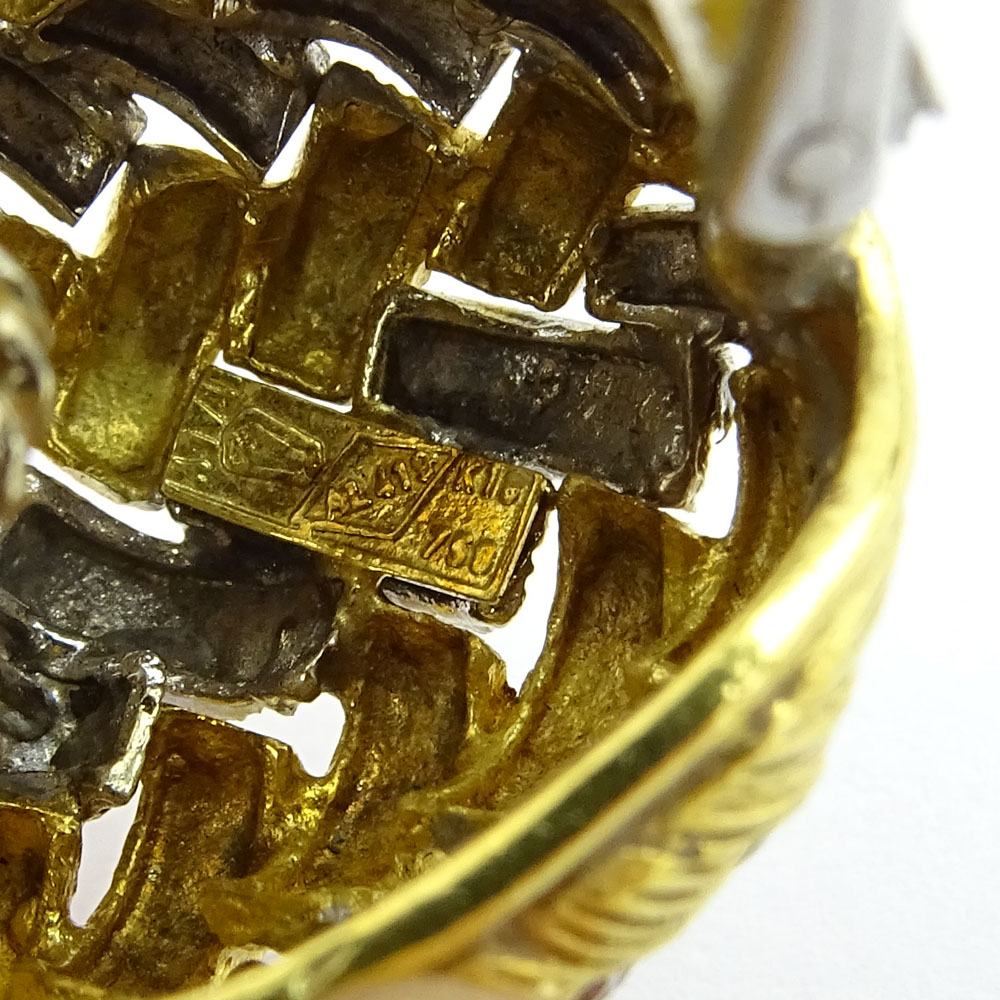 Pair of Vintage Italian 18 Karat Yellow and White Gold Earrings. Signed Italy 750. Good vintage condition. Measure 1" x 3/4". Approx. weight: 15.85 pennyweights. Shipping $30.00 (estimate $600-$800)