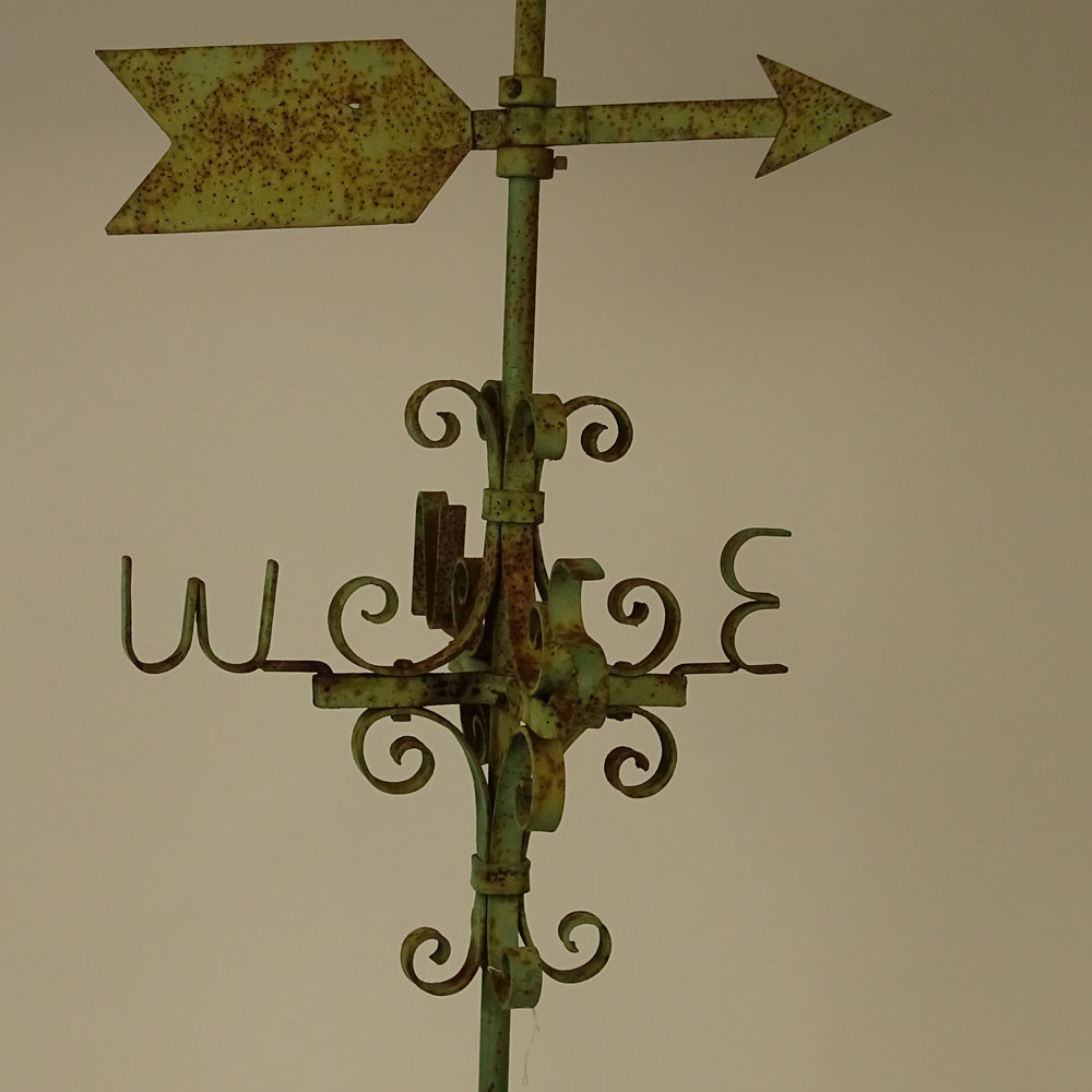 Early 20th Century Standing Painted Wrought Iron Weather Vane. Lacking Top Ornament. Unsigned. Surface corrosion, paint loss. Measures 78" x 23" W. Provenance: Collection of Robert Eigelberger, Casa Phippsberger, a prominent Palm Beach, Florida estate. Shipping: Third party (estimate $200-$400)