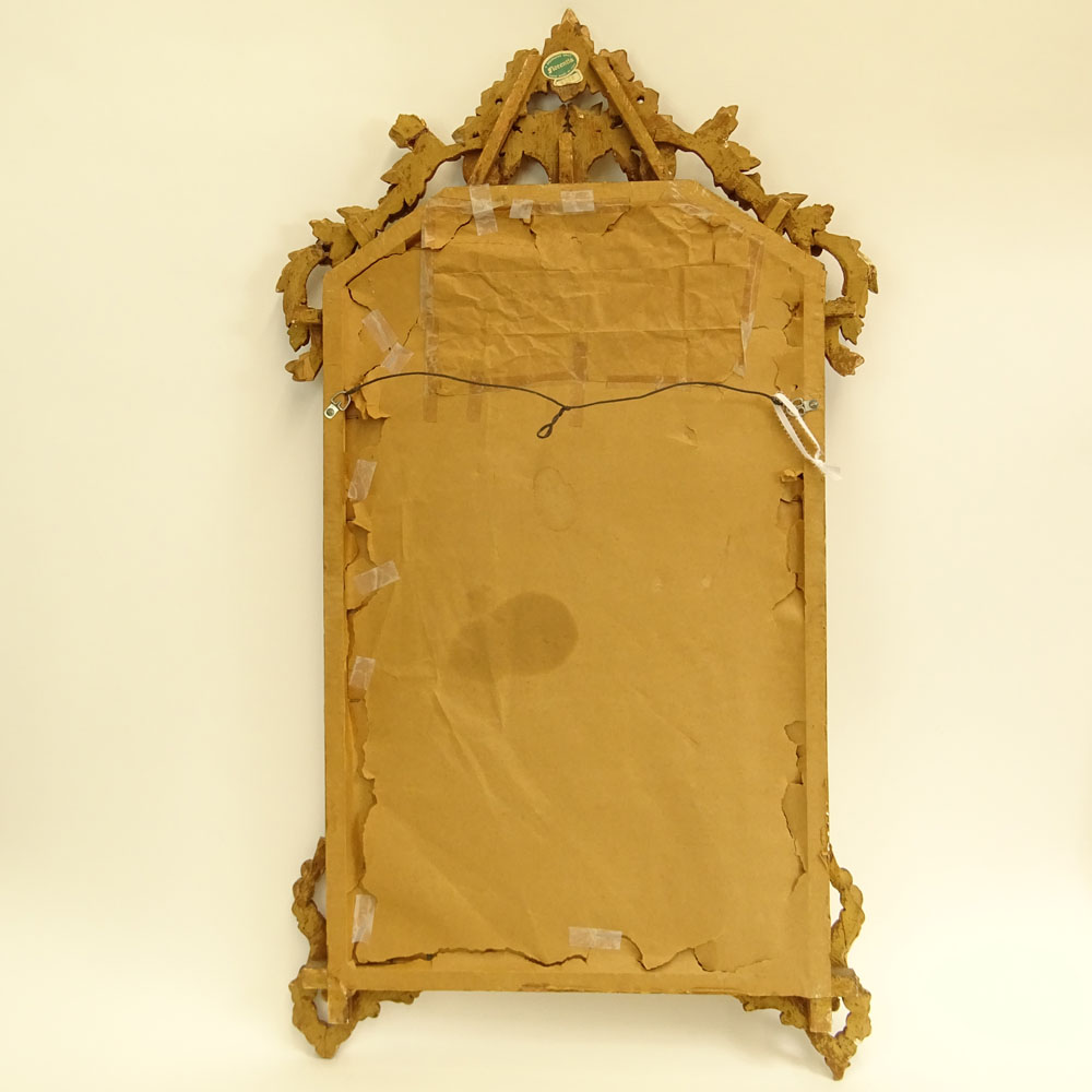 20th Century Italian Carved and Giltwood Mirror. Signed Made In Italy. Minor rubbing or in good condition. Measures 30" H x 22" W. Provenance: Collection of Robert Eigelberger, Casa Phippsberger, a prominent Palm Beach, Florida estate. Shipping: Third party (estimate $200-$300)