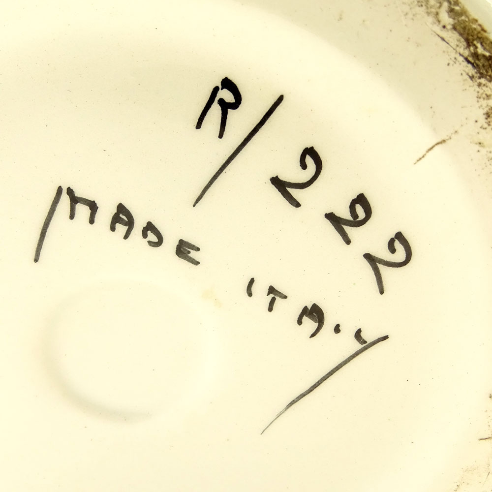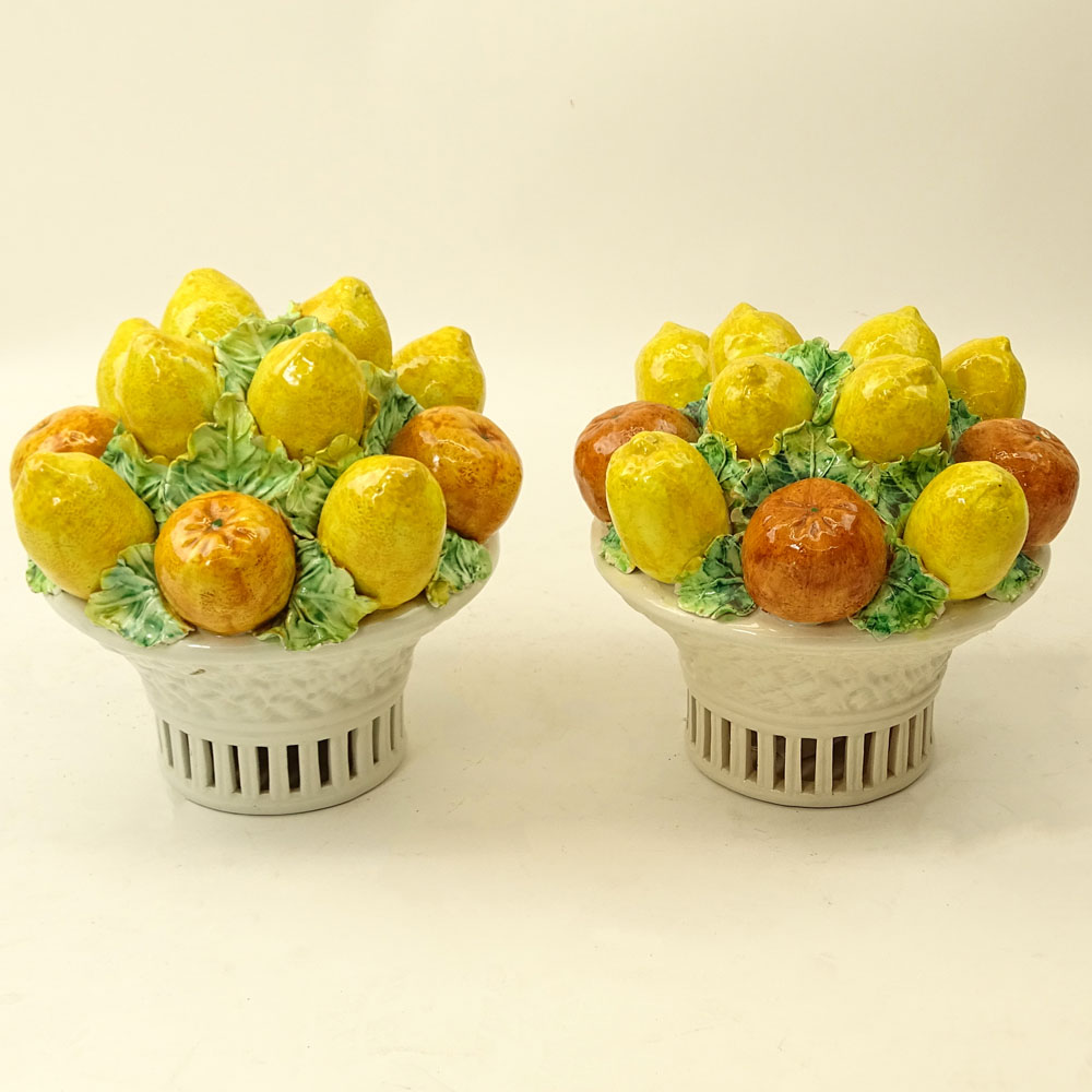 Pair of Vintage Italian Majolica Fruit Topiary. Signed Made In Italy. Minor losses or in good condition. Measures 10" H x 12" W. Provenance: Collection of Robert Eigelberger, Casa Phippsberger, a prominent Palm Beach, Florida estate. Shipping $125.00 (estimate $150-$250)