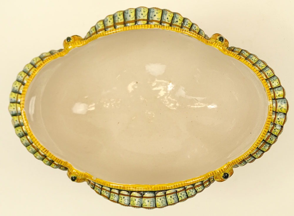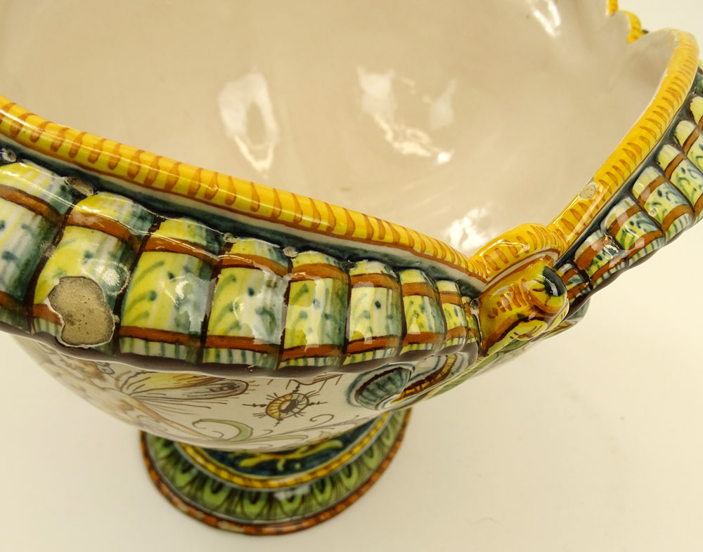 20th Century Majolica Figural Centerpiece. Signed with rooster mark. Minor surface wear. Measures 7-1/2" H x 12" L x 8-1/2" W. Provenance: Collection of Robert Eigelberger, Casa Phippsberger, a prominent Palm Beach, Florida estate. Shipping $65.00 (estimate $100-$200)
