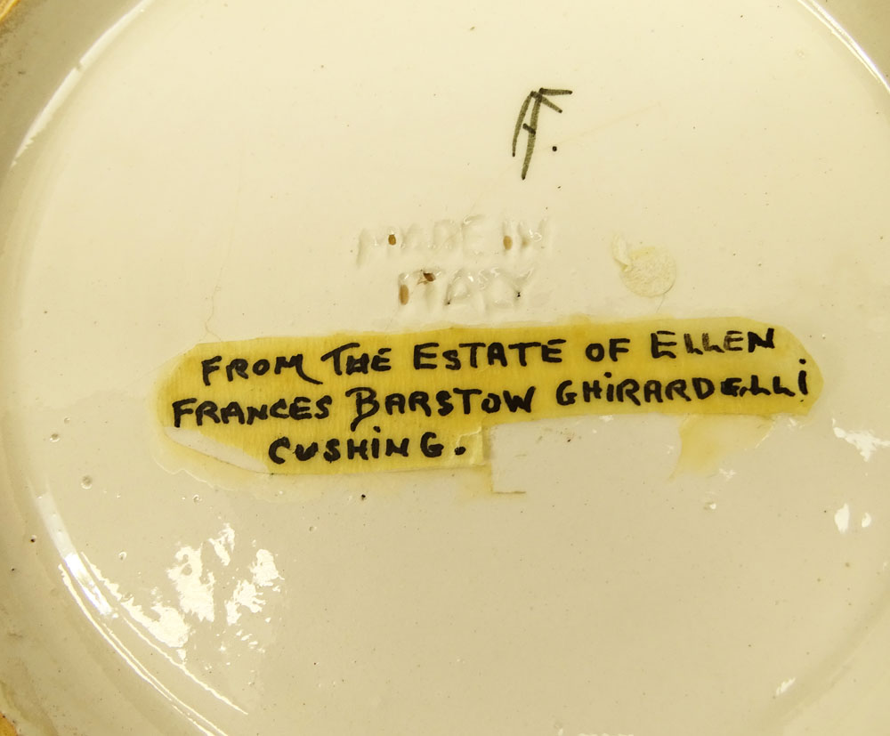 Lot of Three (3) Italian Majolica Fruit Border Plates. Signed Made In Italy. Surface losses. Larger measures 10-1/2", the pair 9" dia. Provenance: Collection of Robert Eigelberger, Casa Phippsberger, a prominent Palm Beach, Florida estate. Shipping $65.00 (estimate $50-$100)