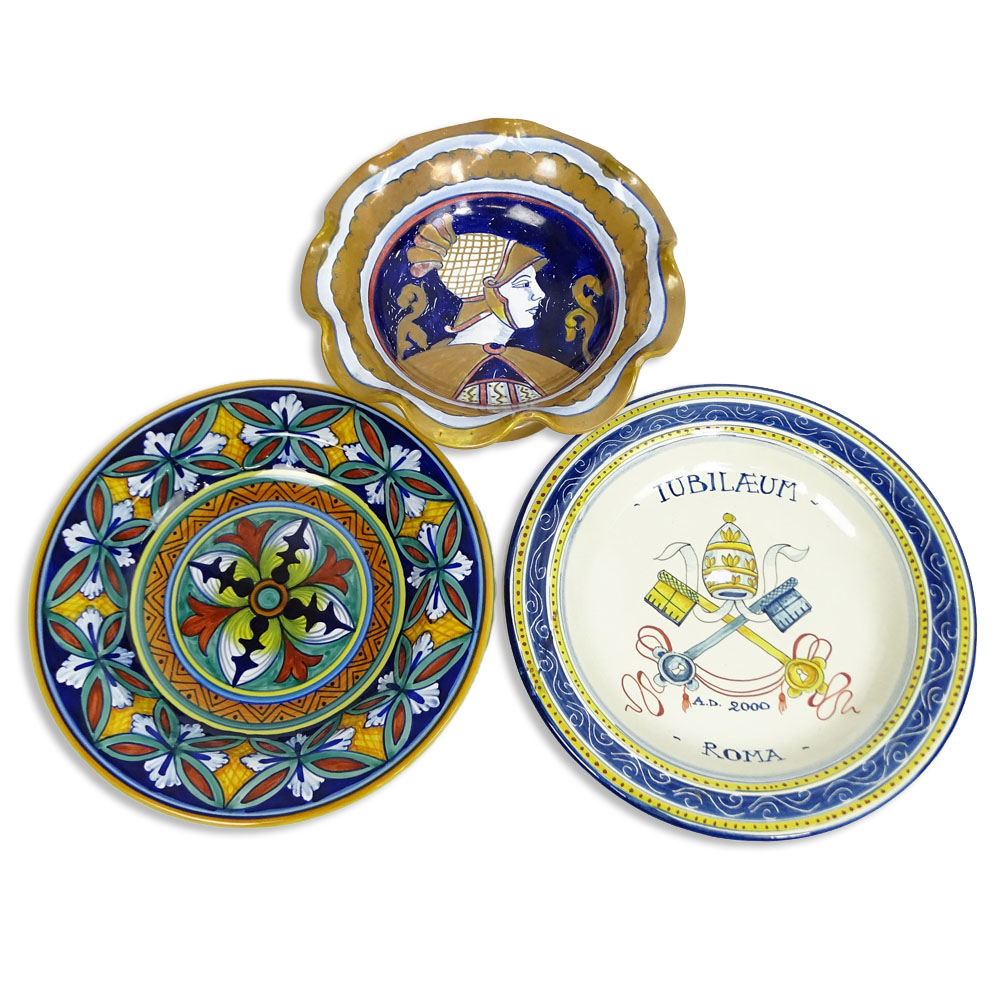 A. Rubboli Majolica Footed Compote, Italian La Cittadella Majolica Plate and Italian Bartoloni Majolica Plate. Signed. Good condition. Compote measures 4-1/2" H, 8" diam. Plates measure 9-7/8" diam. Provenance: Collection of Robert Eigelberger, Casa Phippsberger, a prominent Palm Beach, Florida estate. Shipping $76.00 (estimate $50-$100)