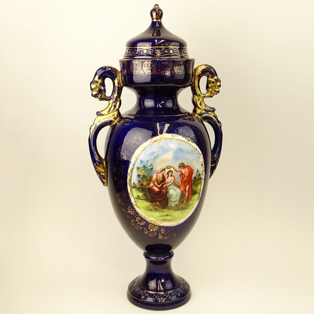 Mid 20th Century Italian Porcelain Hand Painted and Transferred Decorated Urn. Unsigned. Wear, rubbing. Measures 29" H. Provenance: Collection of Robert Eigelberger, Casa Phippsberger, a prominent Palm Beach, Florida estate. Shipping: Third party. (estimate $200-$300)