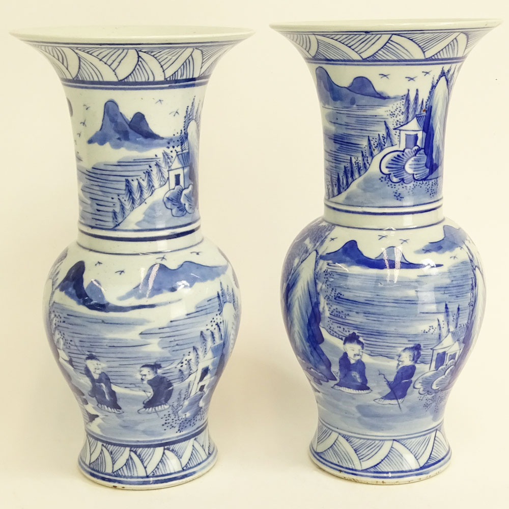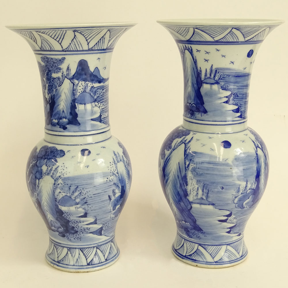 Pair Antique Chinese Blue & White Porcelain Baluster Vases.