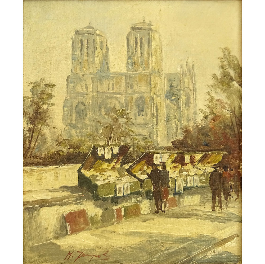 Mid Century Paris School Oil on Canvas "Notre Dame" Signed lower left. Good condition. Measures 10-1/2" x 8-3/4", frame 15-1/2" x 13-3/4". Shipping: $62.00 (estimate $200-$400)