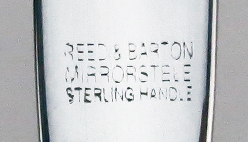 Sixty-Six (66) Piece Reed and Barton Modern Hollow Sterling Silver Flatware Set. Includes: 12 knives, 12 desert oval spoons, 12 teaspoons, 12 salad forks, 12 forks, 1 pie server, 1 pierced serving spoon, 1 serving spoon, 1 sugar shell spoon, 1 cold meat fork, and 1 butter knife. Signed. Good condition. Knife measures 9" . Fork measures 7-1/2" . Weighs approx. 108.22 Troy ounces with knives. weighs approx. 88.67 Troy ounces without knives and serving pieces with stainless. Shipping $85.00 (estimate $1000-$1500)