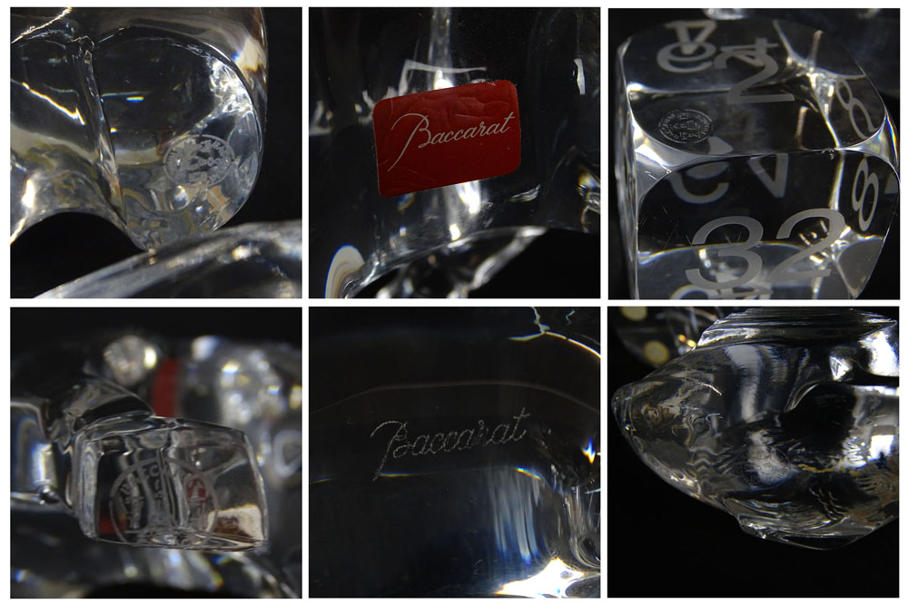 Lot of Five (4) Baccarat Crystal Figurines. Includes warthog 3-1/2", anteater, pig, dice (small chips). All pieces signed. Very good condition or as described. No Boxes. Shipping $48.00 (estimate $100-$200)