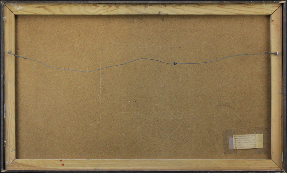 William Maynard, American (1921-2006) Acrylic on Masonite "Checking the Nets" Signed Lower Right. Provenance en Verso. Good condition. Measures 24-1/2" H x 40-1/2" W. Shipping: Third party (estimate $400-$600)
