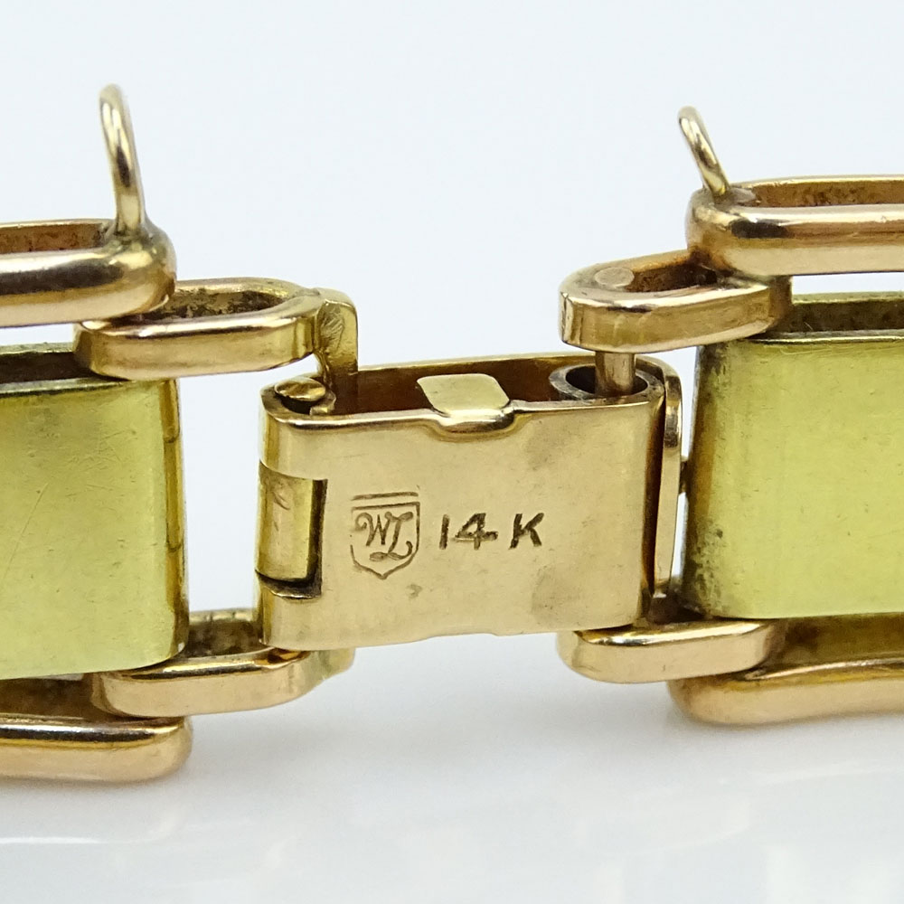 Vintage 14 Karat Yellow and Rose Gold Bracelet. Signed 14K. Good vintage condition. Measures 7" L, 1/2" W. Approx. weight: 23.80 pennyweights. Shipping $28.00 (estimate $850-$1050)