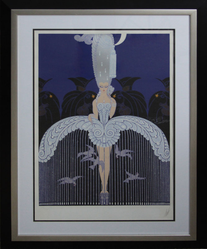 Erte Romain de Tirtoff , Russian/French (1892-1990) Color lithograph "Burlesque" Signed and numbered LXXI/CXXV. Good condition. Measures 29" x 19", frame 38-3/4" x 28-1/2". Shipping: Third party (estimate $200-$300)